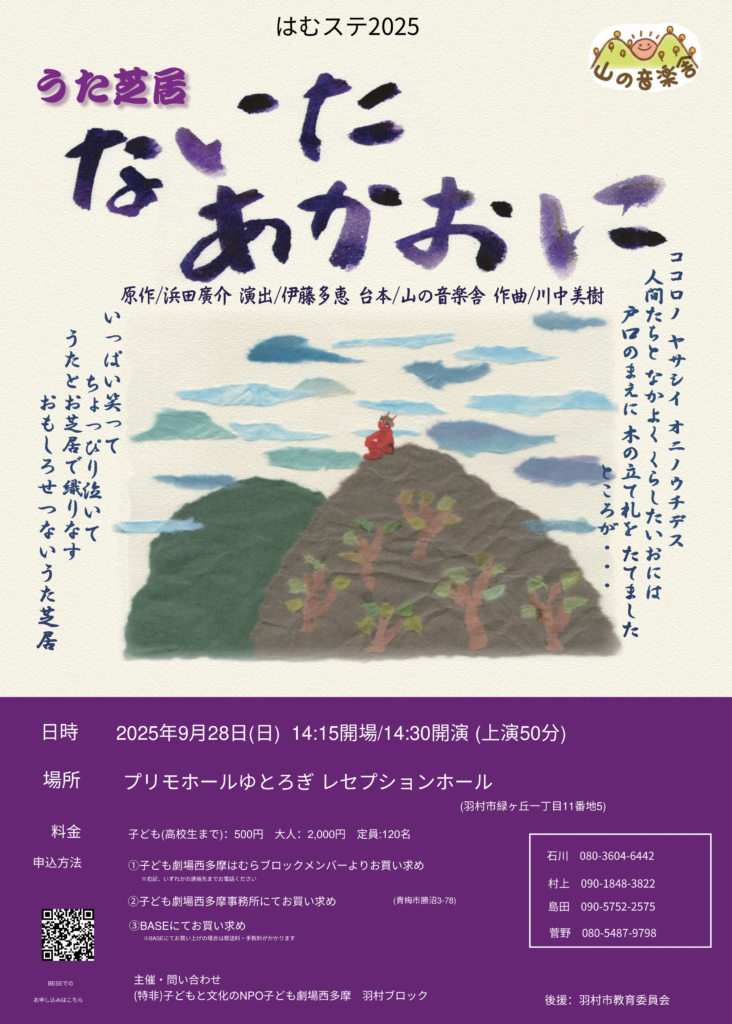 2025年のはむらdeステージは・・・・うた芝居「ないたあかおに」山の音楽舎 日時、… -