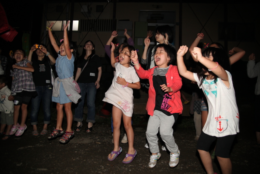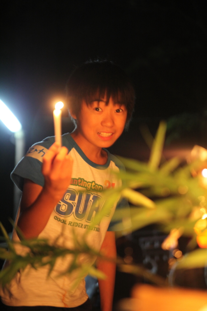 キャンプファイヤーは、キャンドルを使い、スタンツや踊りをしました。