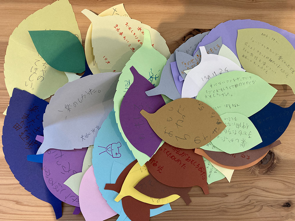 舞台が終わってから、子どもたちが葉っぱの形の画用紙に