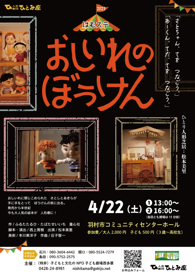 会員や知人だけでなく、小学校へチラシを配布した効果で初めてはむステに足を運んでいただいた方にも楽しんでいただけました。まさに「ひとり人形芝居」で、導入から幕切れまで見事な演出、演技でした。そして、終演後子ども達の質問に答えてもらったり、人形や小道具を見せてもらって、子どもも大人も大満足❗️心踊る時間でした。