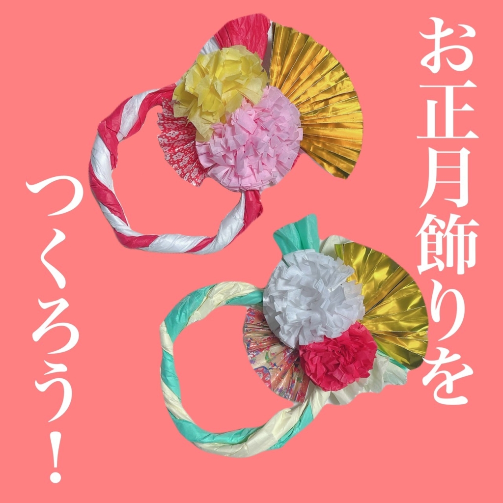 好きな色のお花紙や折り紙を折ったり丸めたり貼ったりしてあなただけのオリジナルお正月飾りを作ろう。