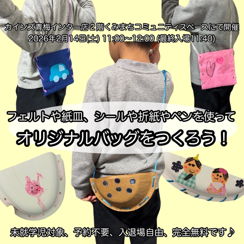 フェルトや紙皿、シールや折り紙やペンを使って自分だけのバッグをつくろう!バレンタイン用や雛祭り用にしたり、お気に入りの絵を描いても良いよ!家族やお友達とみんなで楽しく作ろう!
