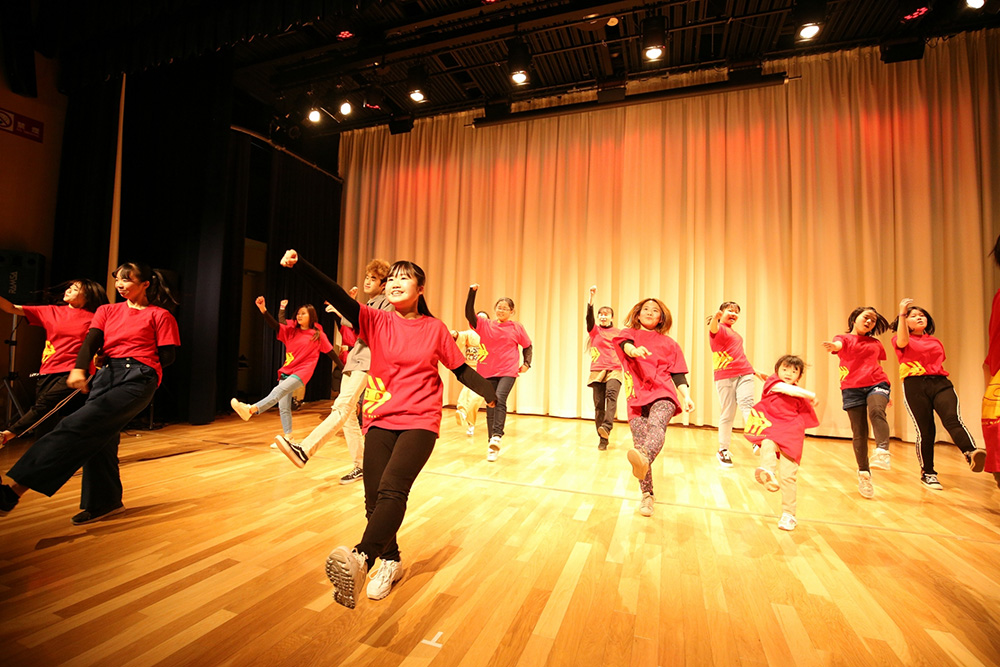 あそぶあーと事業部によるダンスチーム、カラフルレインとレッドマウンテン合同のクリスマス会。子どもから大人まで一緒に楽しむチーム。