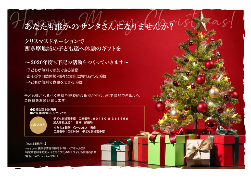 あなたも子どもたちのサンタさんになりませんか?西多摩の子ども達へ体験のギフトを!